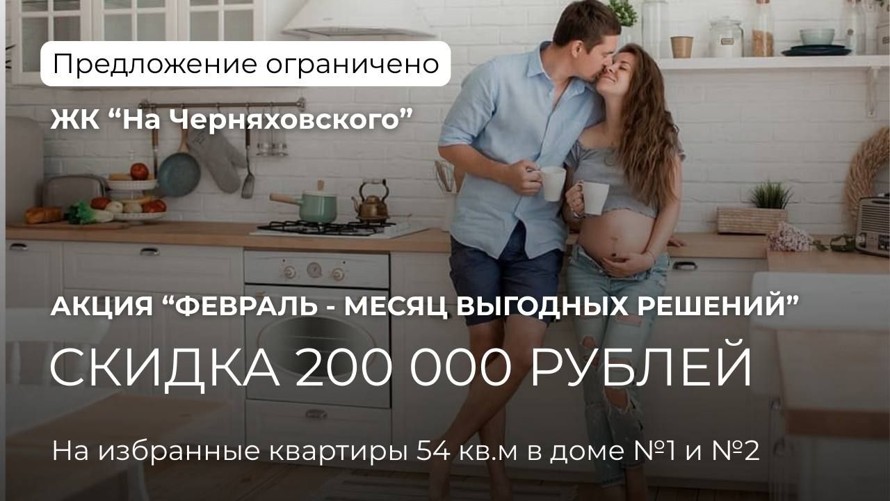 Скидка 200 000 рублей на 4 квартиры площадью 54 кв.м., стояки 3 и 4 в доме №1 и доме №2