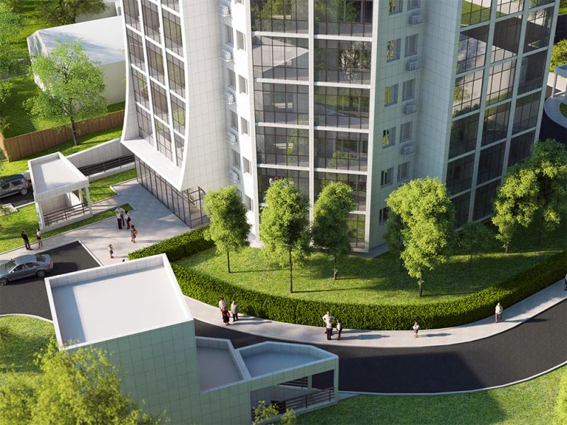 Этажность дома – 21, проектом предусмотрены коммерческие и индивидуальные кладовые помещения, а также два этажа подземного паркинга на 89 машиномест.